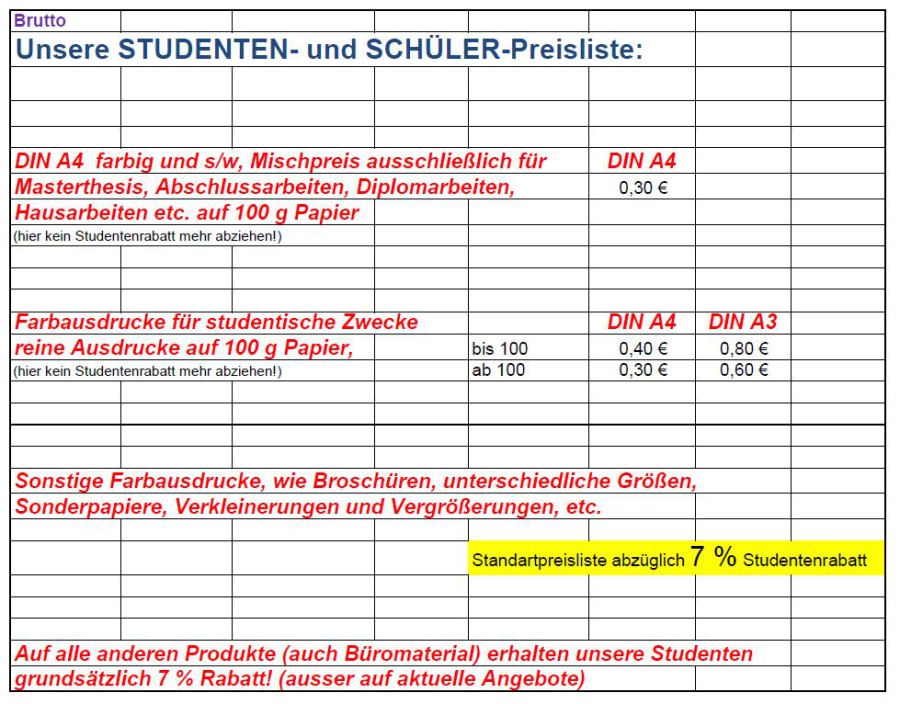 Für Schüler und Studenten haben wir für Farbdrucke Sonderpreise.
